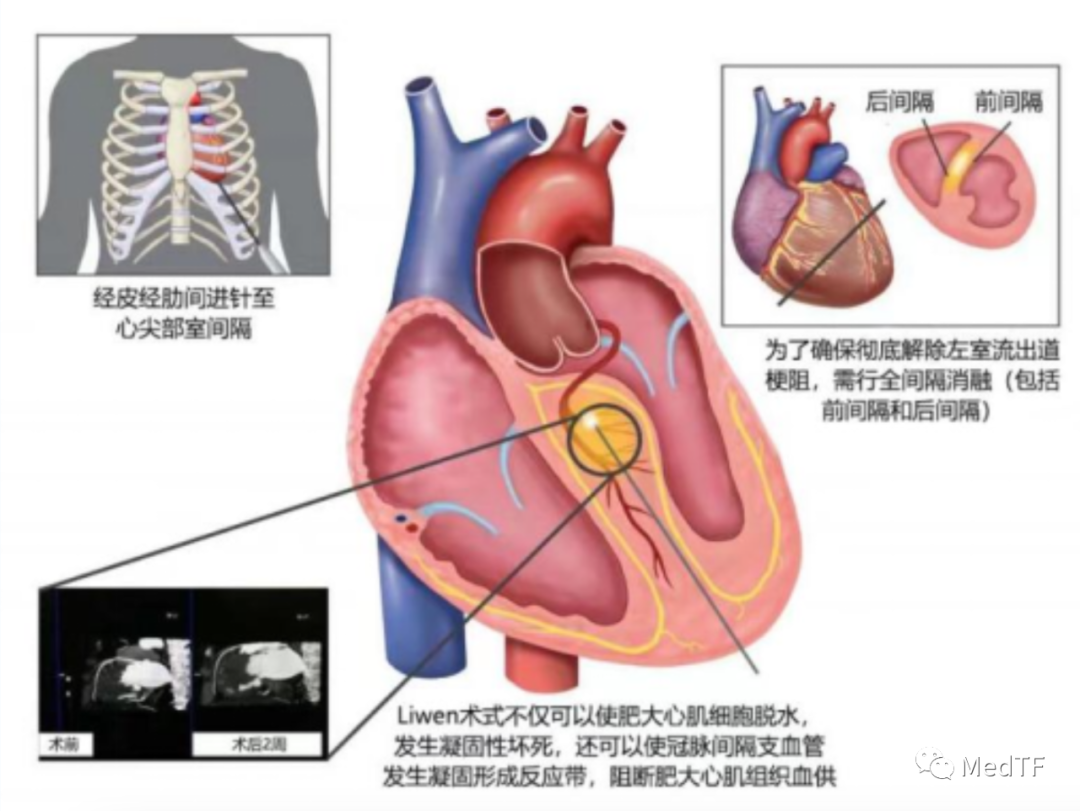 Liwen 采用纯超声引导、经皮、经胸穿刺的路径(Liwen术式),对肥厚的室间隔进行射频消融治疗。