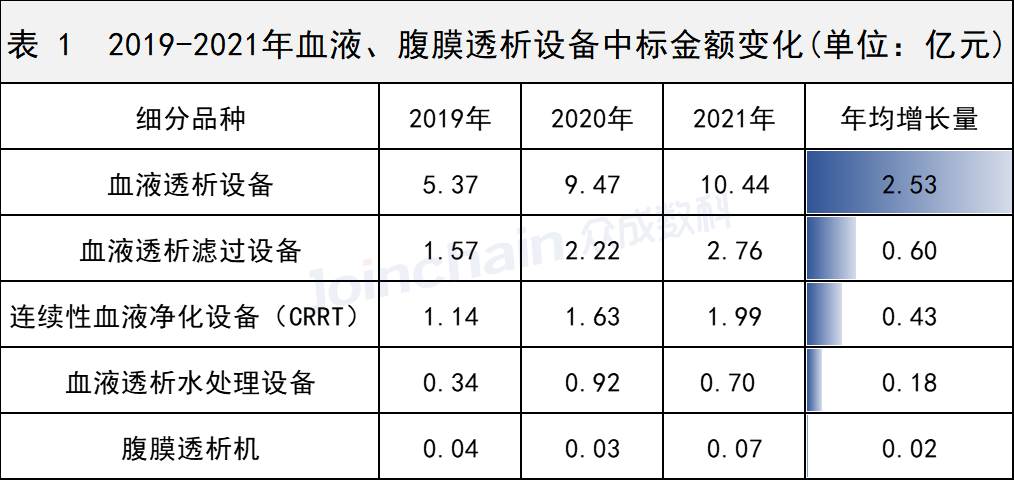 中标数量上,血液透析设备在2020年中标数量最多,为4703件,年均增长量为436件。