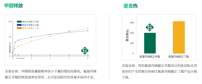 在成分上,相比于上一代粘合剂的主要成分氰基丙烯酸正丁酯,博恩锐尔医用粘合剂主要成分为α-氰基丙烯酸正辛酯,有着闭合强度更高、柔韧性更强、皮肤刺激性降低,等强大优势,同时在创口愈合过程中,胶膜作为细菌屏障,柔韧防水、避免二次感染,让患者的术后体验更好。